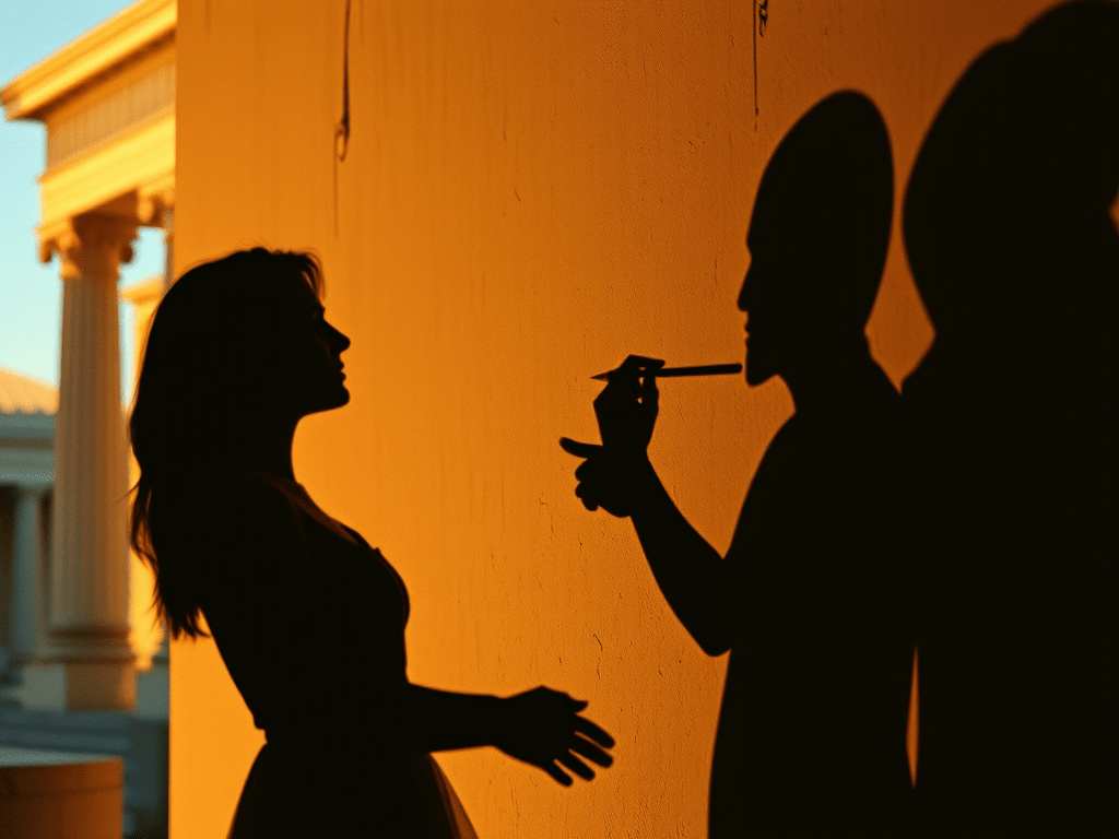 Y dibuja, inventa a partir de esa ardicia y esa sombra proyectada el primer dibujo del mundo. Como ella es griega es válido suponer que no sólo registra el perfil de la cara del amado proyectado en la pared sino que dibuja el cuerpo entero en erección y pleno de deseo. Pronuncia entonces por primera vez la frase favorita de cualquier buen pintor futuro; “espérame tantito no te muevas por favor”.