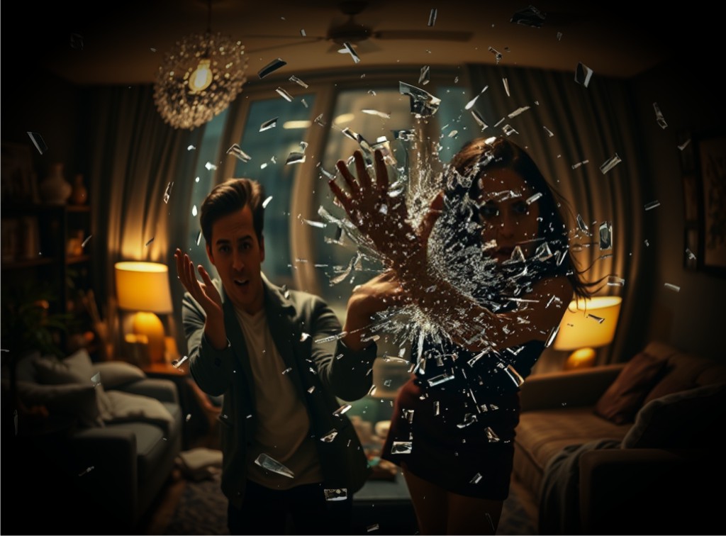 Justo en ese momento Santiago la vio venir, sujetaba el espejo que dejó caer con fuerza sobre él que en un mero reflejo solo pudo levantar las manos para recibir el impacto con todo estruendo. Vió el montón de vidrios regados por todo el piso, por un momento se quedó bloqueado por el shock, unos segundos después algunos vecinos tocaron a la puerta para averiguar lo que estaba sucediendo. El abrió la puerta y dos mujeres estaban de pie en la entrada y Cinthia al verlas comenzó a temblar y llorando decía: