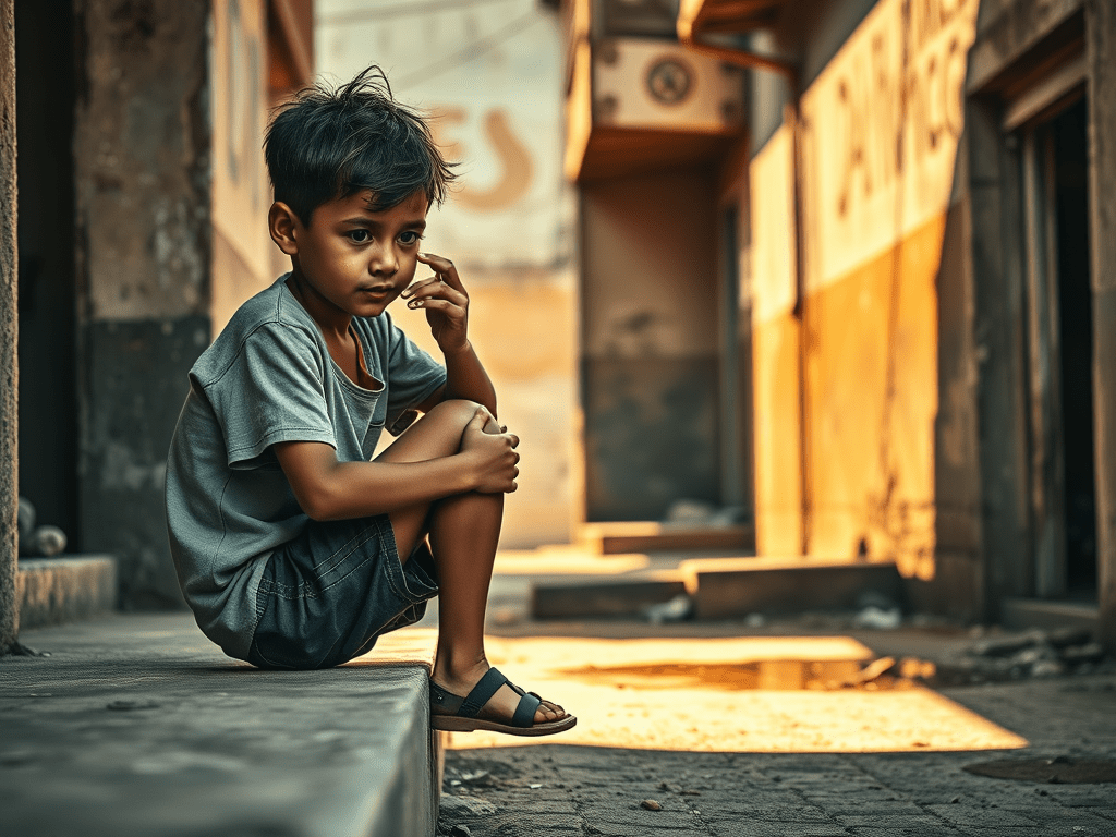 Esa mañana lo vi sentado en la acera, estaba llorando. No puedo describir la sensación que me invadió en ese momento al mirar su cara sucia y triste, me recorrió en forma de escalofrió por todo el cuerpo, así que me acerque a él y le pregunte por que lloraba y contestó: