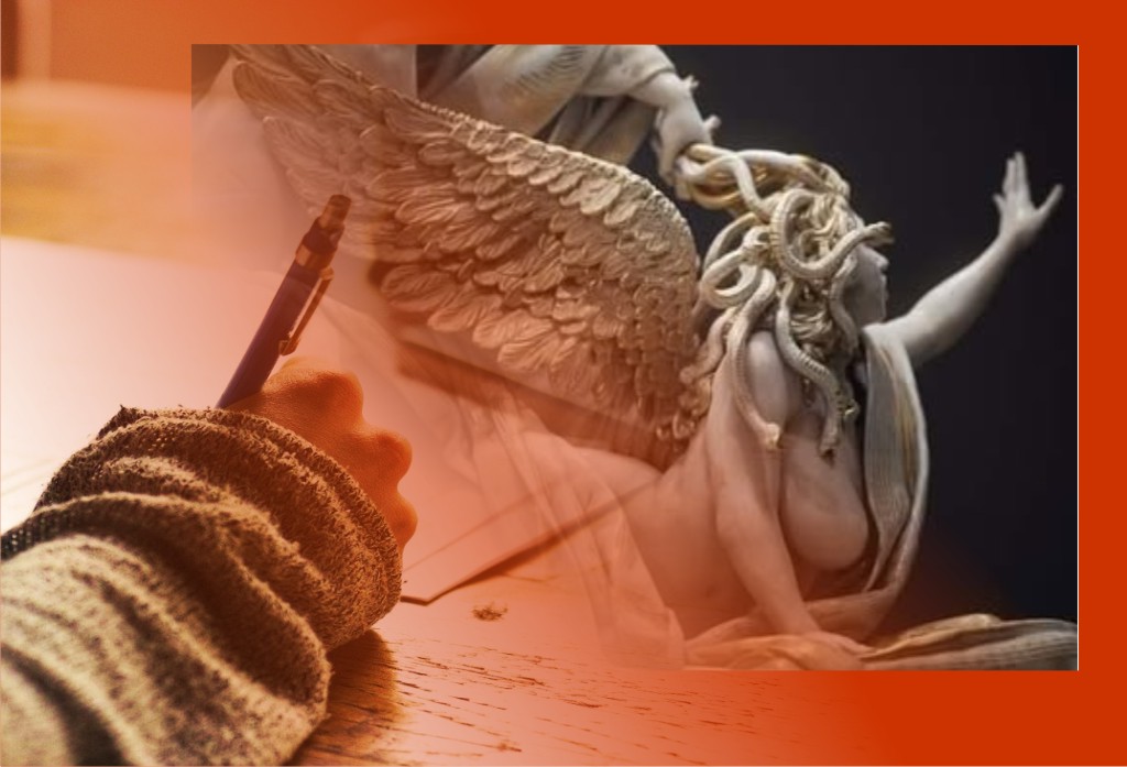 El mito de Medusa nos persigue desde hace más de tres mil años; representada por colmillos de jabalí, serpientes en lugar de cabello, nos mira directamente a la cara con la lengua de fuera con una sonrisa sardónica, y esa mirada que petrifica desde el interior. Recordemos que la mitología griega nos ofrecen un mundo confuso, relatos de hechos históricos que nos indica el cómo vivir, y explica la naturaleza de las cosas. El mito de Medusa nos muestra el comportamiento que tuvieron algunos hombres al desear combatir a una mujer “hórrida y malvada” que sumergía en la oscuridad con una sola mirada a aquel que osara enfrentarla.