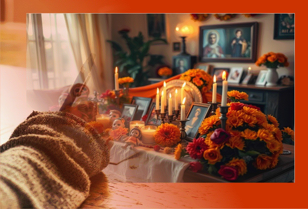 Desde la sala veo cómo los pabilos de las veladoras se van quemando poco a poco y siento el frio sobre mi piel como si el invierno nos fuera invadiendo desde este otoño que a veces parece primavera y otras, un verano agotador porque el sol últimamente quema y agota, pero nuestras ofrendas a pesar del temor a Dios o a la muerte, debe de quedar tan bella, como ese amor, admiración y respeto que sentimos por todos los que nos miran desde las paredes, desde atrás de una veladora o a lado de las flores.